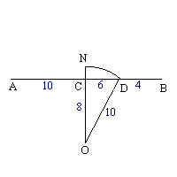 Next we bisect AB at C and construct the perpendicular CO of length equal to 6 (= b).